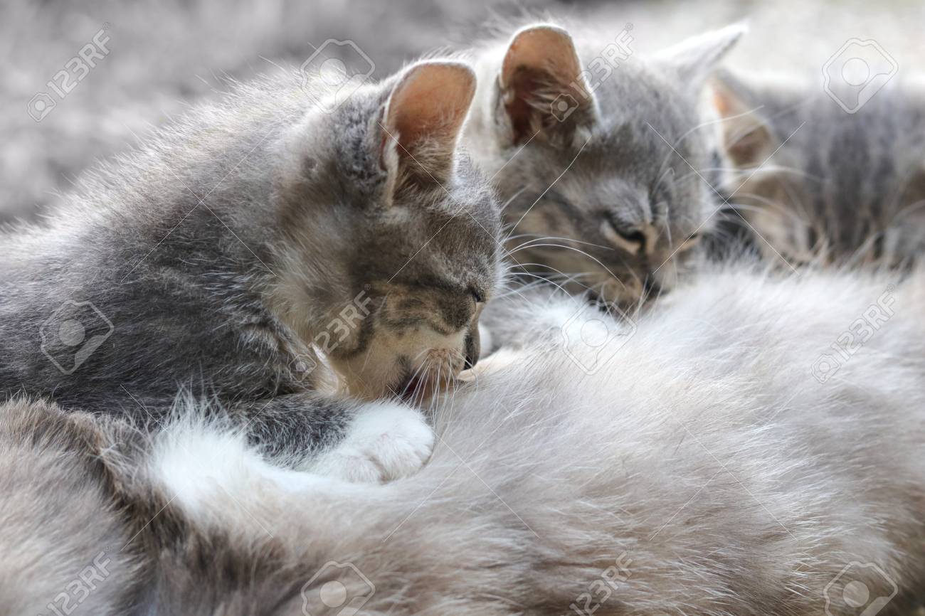 Cute Little Kittens With Their Mom Close Up Stock Photo Alamy . Aren't They Cute?.They Are My Pet Cats.i Took Pictures About And Hour.if You're Wondering How Many Cats I Have,There's 6 Cats.if You Include My Dead Cats,All Together Will Make 17.