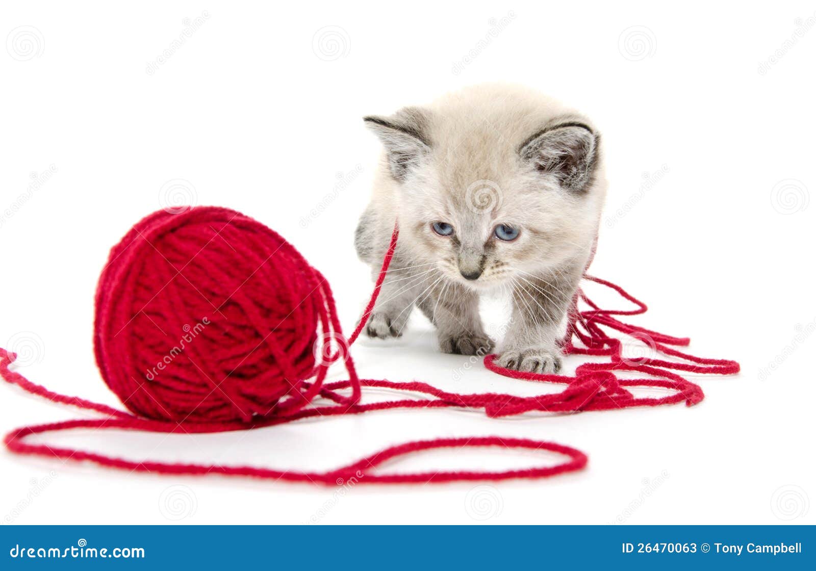Cute Tabby Kitten Playing With Yarn Cute Baby Tabby Cat Playing With Ball Of Red Yarn On White Background - Kitten Playing With Yarn Ball.